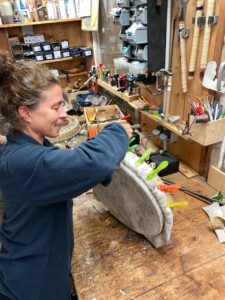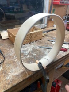 Wir bauen Rahmentrommeln mit Durchmessern von 30-50 cm . Die Rohrahmen aus Esche, Nuss, Buche oder Eiche fertige ich vor. Die Bespannung erfolgt üblicherweise mit Ziegenhaut oder auch Hirschkuh, Reh etc. je nach Verfügbarkeit. Die Bespannung erfolgt mit gewobener Hanfschnur. Der Schlagstock wird aus Filz auf den Stab gefilzt.
