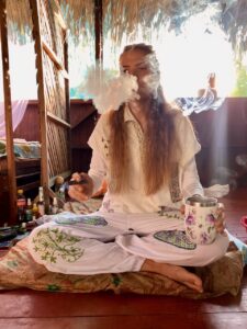 Durch den Rückzug in unsere einfachen Hütten beginnt sich Zeit und Raum etwas aufzulösen und wir versinken in den Geräuschen, Gerüchen und den Düften des Regenwaldes. Umgeben vom Grün des Waldes und den ständigen Singen der Vögel, Frösche und Insekten tauchen wir immer tiefer in die Welt der Pflanzen und ihrer Spirits ein. Blütenbäder, Behandlungen, nächtliche Rituale, schamanische Gesänge und eine ausgewählte Diät unterstützt deinen persönlichen Reinigungs- und Heilungsprozess für Körper Geist und Seele.