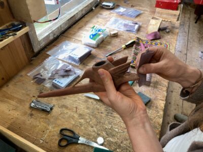 Die Pfeifen, die an diesem Wochenende entstanden sind, haben alle ihre ganz individuelle Energie und ihr ganz eigenes Design. Die Faszination, wie aus zwei Holzstücken die eigene Pfeife entsteht, begeisterte dieses Wochenende die Teilnehmer:innen.