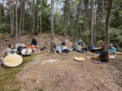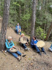 Das Wetter war uns gnädig und so konnten wir am Sonntag mit unseren frisch geborenen Trommeln in die Natur des Waldviertels wandern und unsere Trommeln zum ersten Mal im Wald erklingen lassen. Dies ist immer ein besonderer Moment für mich als Geburtsbegleiter der Trommeln, wenn ich diese Kraft so vieler neuen Trommeln höre und fühle.