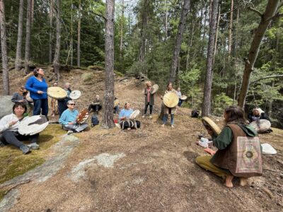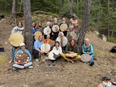 15 neue Trommeln entstanden an diesem Wochenende in Schrems. Das Besondere an diesem Kurs war für mich das alle Teilnehmerinnen und Teilnehmer 95 % ihre Trommeln komplett selbst gebaut haben und sehr wenig Hilfe und Mitarbeit meinerseits notwendig war. Somit entstand eine besondere Verbindung mit den eigenen Trommeln als Kraftgegenstand.