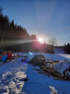 Danke für diese feinen gemeinsamen Tage! Ich bin heute danach total beflügelt und ganz klar. Ich habe wieder viel gelernt und mich gefreut euch hier in diesem speziellen Raum der Hütte und der Jurte zu Treffen. Die Lonka hat us zart umspült, der Schnee hat uns in Watte gepackt und das Feuer hat lang und hell gebrannt. Der Sonntag war ein sehr berührender Kreis von Menschen, die ihr Herz geöffnet haben, um Heilung und Verbindung zu erfahren. Es ehrt mich und macht mich stolz, dass ihr den Mut hattet diese Tage in der freien Natur zu feiern und euch auf die Verbindung mit den Spirits eingelassen habt! Danke dafür!